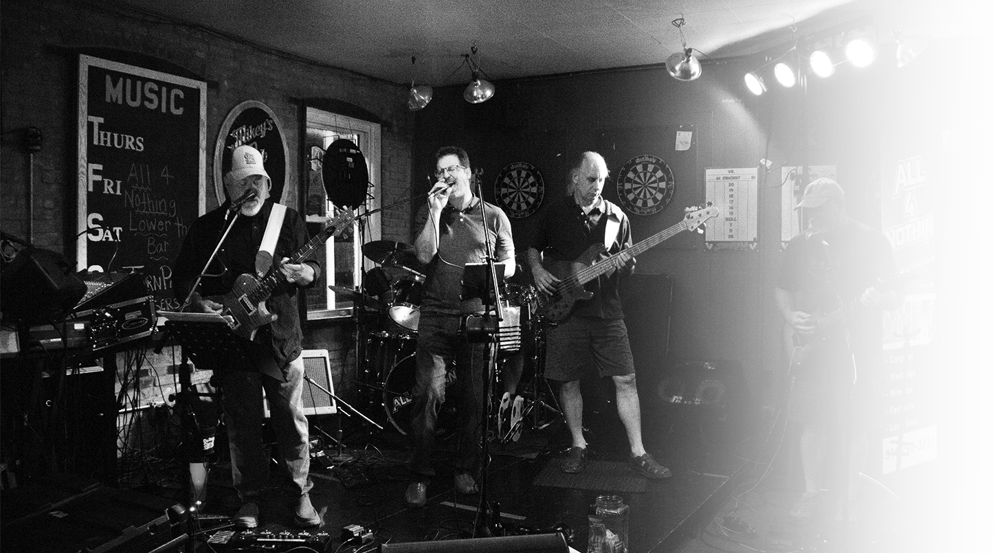 Over the last two decades, the band has maintained camaraderie with our members (come back and sit in with us)! All4nothin's focus has been on performing a variety of great music at a high level which continues today, whether it's spicing things up at a local bar, winery or playing for happy newlyweds across the metro St. Louis region.